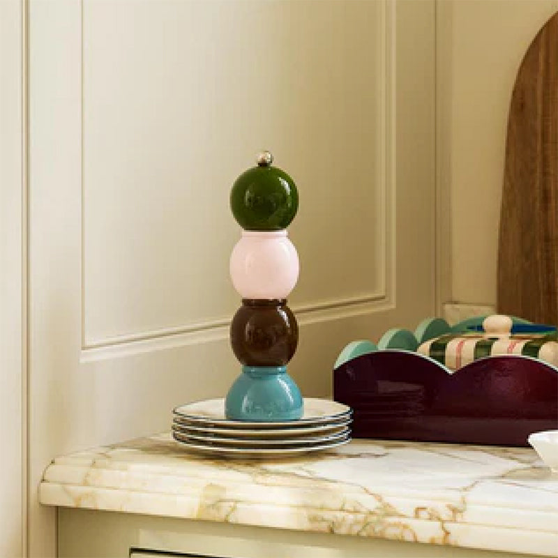 Addison Ross grinders add a bold pop of colour to your table. These unique bobbin mills come with both an S and a P stainless steel screw knob so you can choose whether to use it as a salt or pepper grinder.